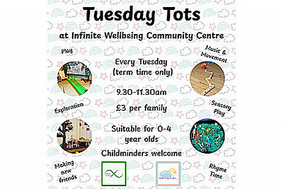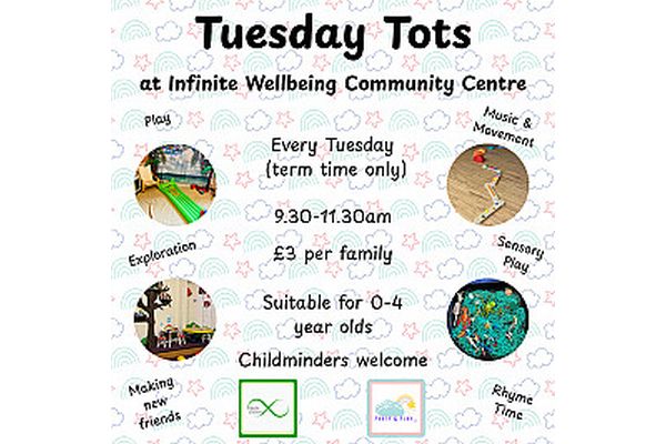 Held every Tuesday during term time from 12:30-2:30 p.m. at the Infinite Wellbeing Community Centre, Tuesday Tots is the perfect way to spend your afternoon. You and your little one can make new friends while enjoying a mix of free play and structured activities. Get ready for fun-filled sessions that include Rhyme Time, Messy Play, and Crafts.