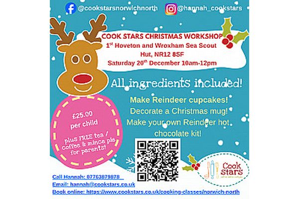 Christmas Cooking Workshop where the children will make Christmas themed Reindeer Cupcakes, decorate their own mug, and hot chocolate kit. Plus free Tea, Coffee and Mince Pies for parent helpers!